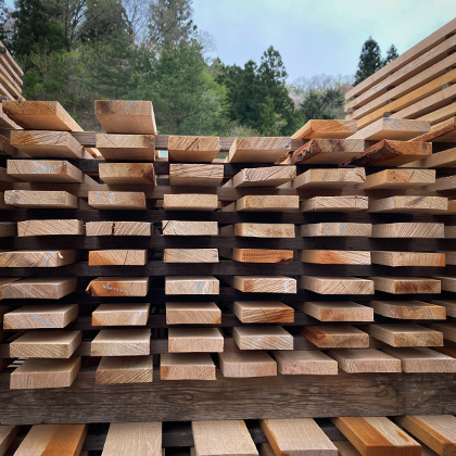 - エンドユーザーのニーズと、山林から産出しやすい色・柄・節の数・長さ・厚さなどを擦り合わせの上、選別する